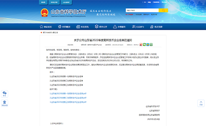 山东省科技厅网站近日发布《关于公布山东省2022年度高新技术企业名单的通知》。山东智慧照明科技有限公...